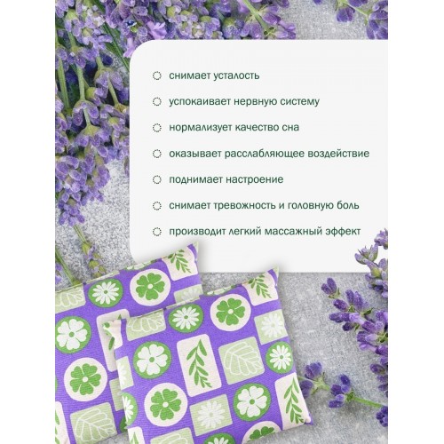 В состав травяной подушки входят соцветия хмеля, мята перечная, ромашка, цвет лаванды, шалфей и морские водоросли зостера. Это прекрасная комбинация снимает раздражительность, успокаивает и способствует здоровому сну.