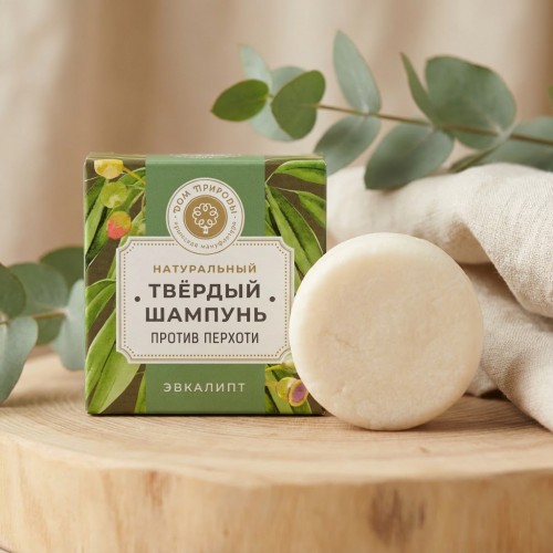 Эфирное масло эвкалипта оказывает антибактериальное действие, успокаивает кожу головы. Экстракт монарды и цинк регулируют выработку себума. Инулин, масла ши и репейное питают и увлажняют волосы. Мешочек для хранения в комплекте.