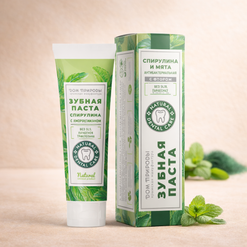 Экстракт спирулины известен своими противовоспалительными и кровоостанавливающими свойствами, поэтому паста особенно комфортна при склонности к кровоточивости десен, чувствительности и воспалениям. Эфирное масло мяты освежает дыхание, успокаивает ткани десен, создает ощущение чистоты и прохлады без агрессивного жжения. Фторид натрия способствует реминерализации, укрепляет эмаль, помогает защитить зубы от разрушения и ранних признаков кариеса.